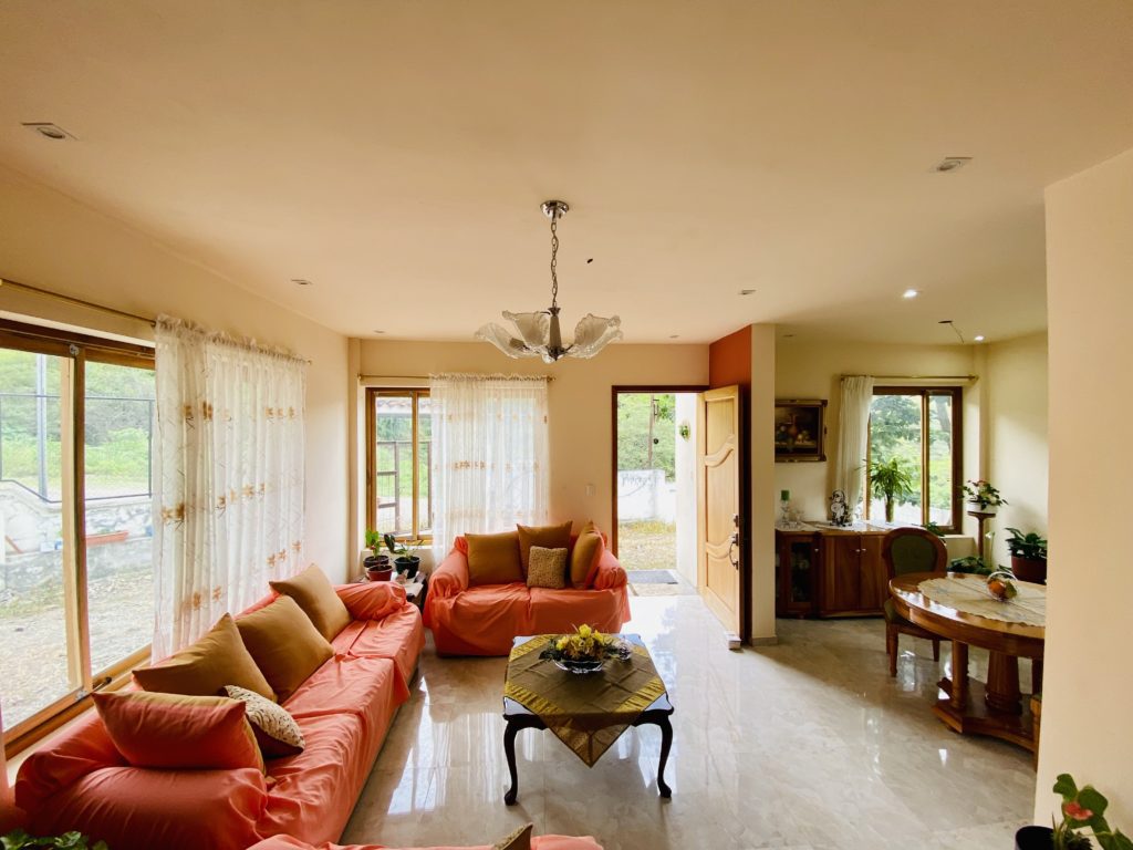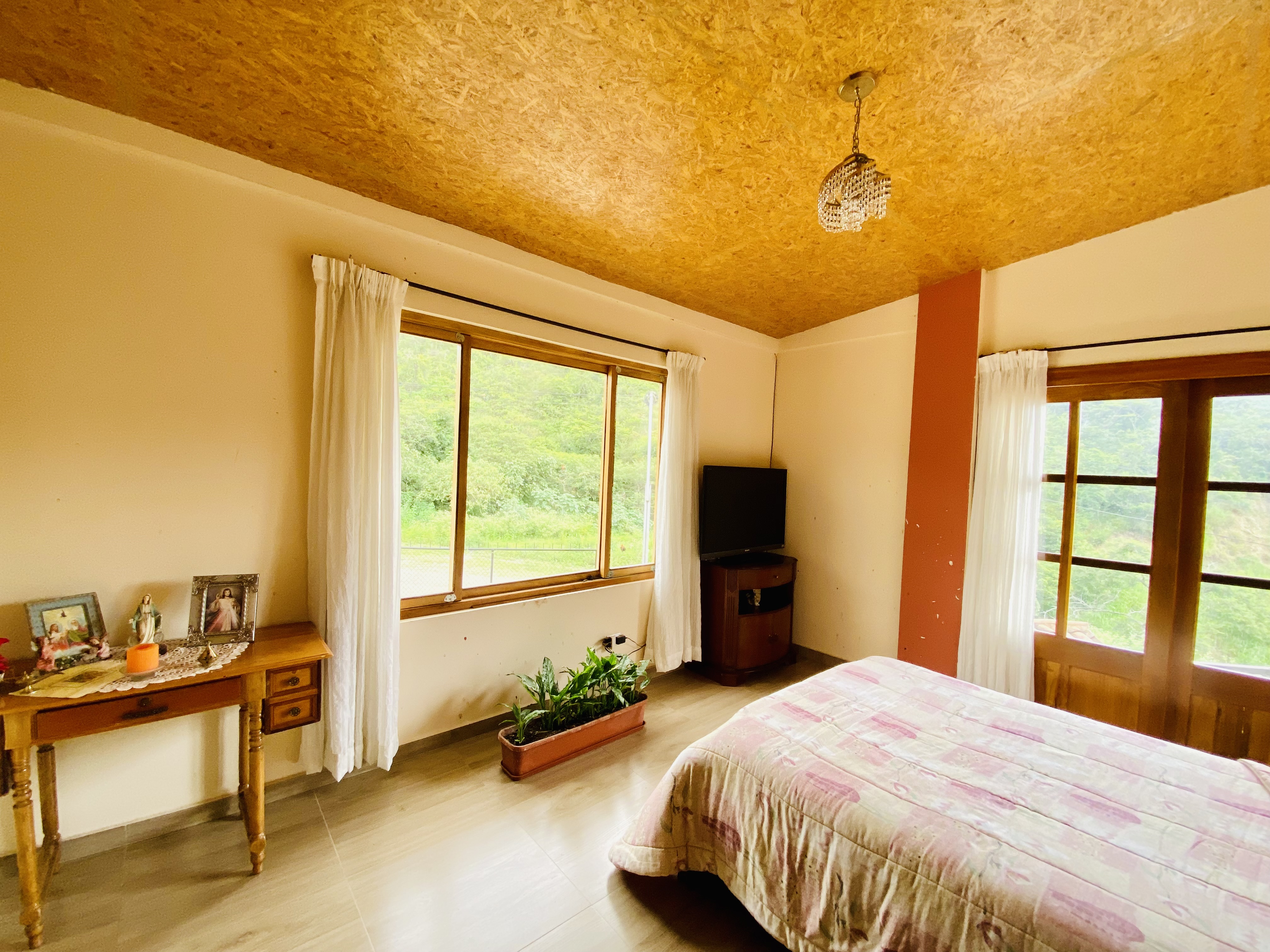 This is a fairly new (3 year old), 2 story brick house located in the neighborhood of Los Huilcos, which is located only about a 3 minute drive from the center of Vilcabamba. The house has 4 bedrooms (that could easily be remodeled into two large master size bedrooms) and two full bathrooms (one of them is the masterbedroom’s ensuite bathroom). There is also a social bathroom downstairs off of the living room.
