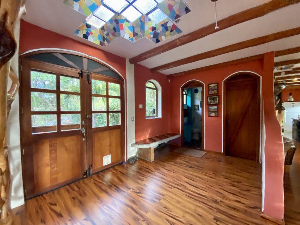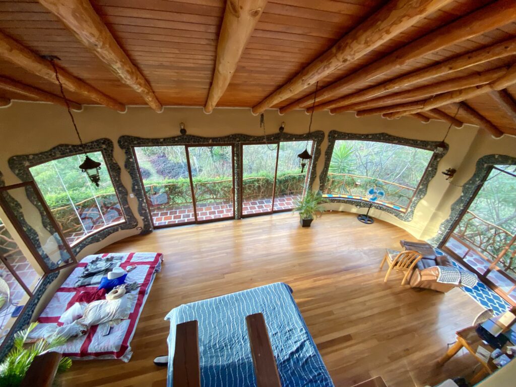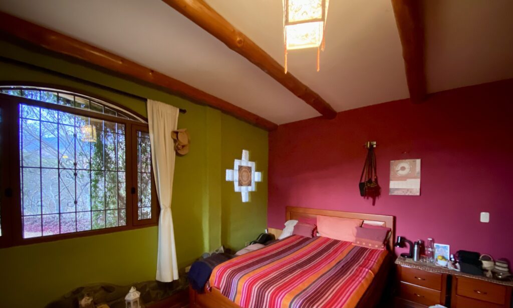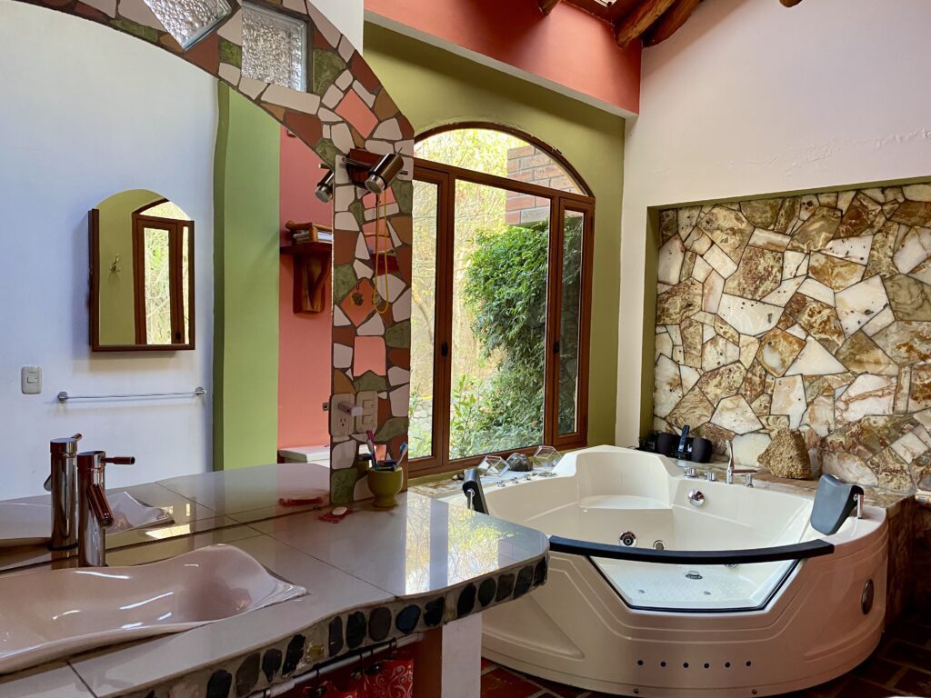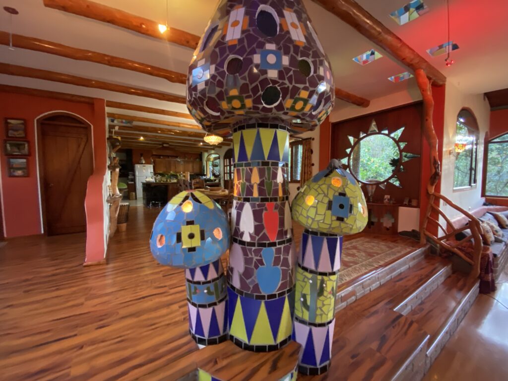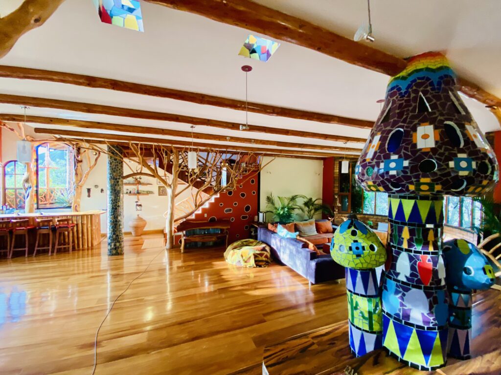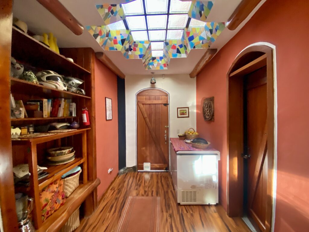 This is a truly unique and special property in Vilcabamba, regarded as one of the best in the area. The three homes on the property are thoughtfully designed, with high-end finishes and artistic touches that capture the charm and character of Vilcabamba. Ceramic art adorns the bathroom and shower walls, colorful glasswork accents, and ceramic mushroom statues with inlaid lights bring a whimsical feel. The houses feature quality hardwood floors and large glass windows, offering incredible green views. The main Red House has granite countertops, chacana-designed glass block inlays, and wooden doors with chacana symbols.