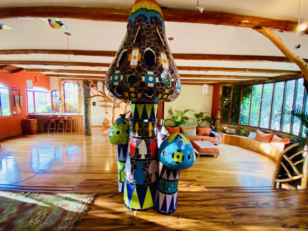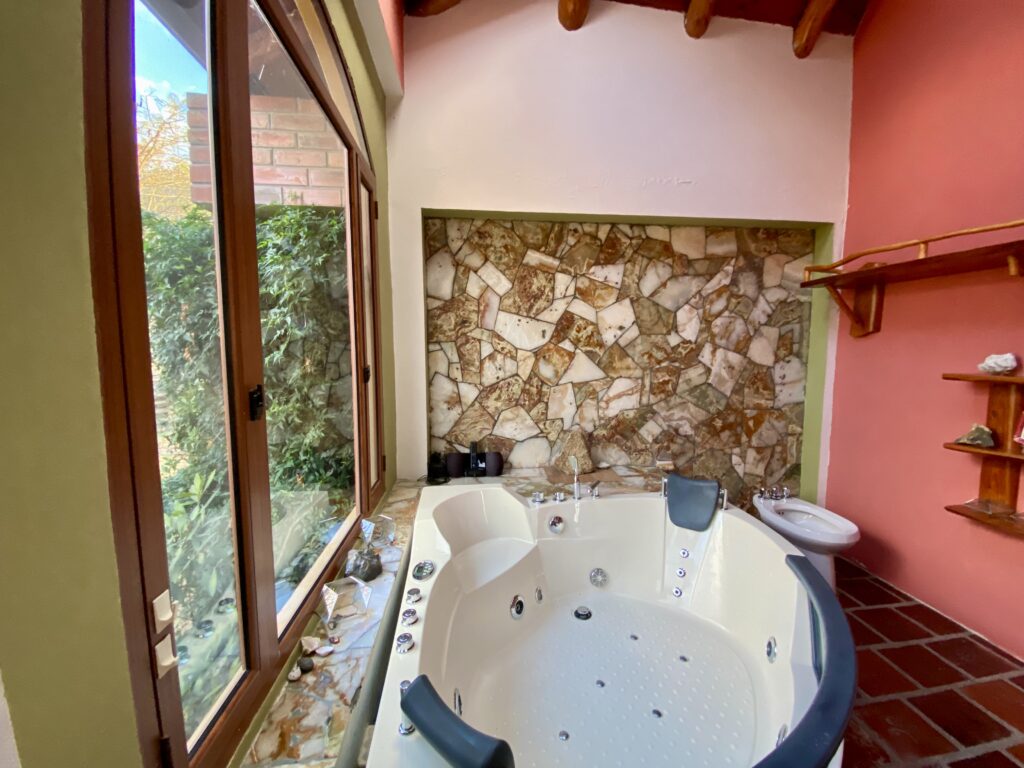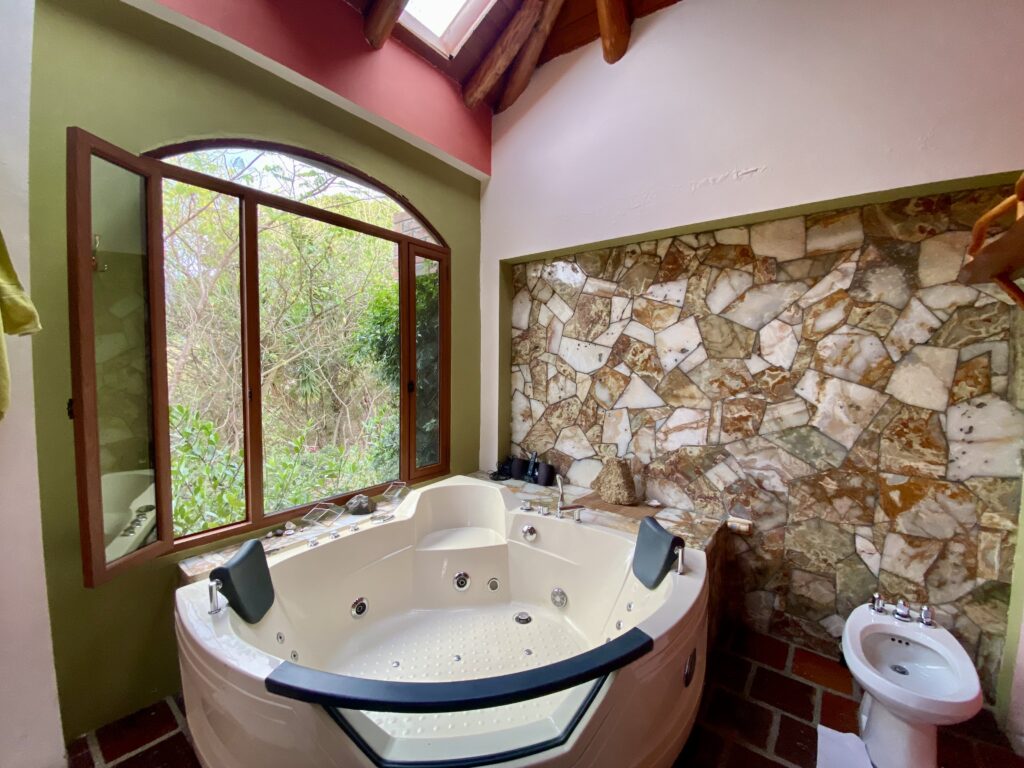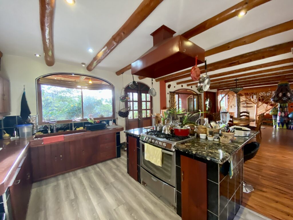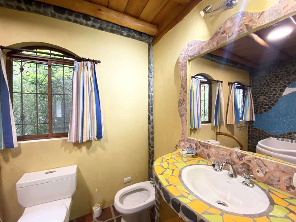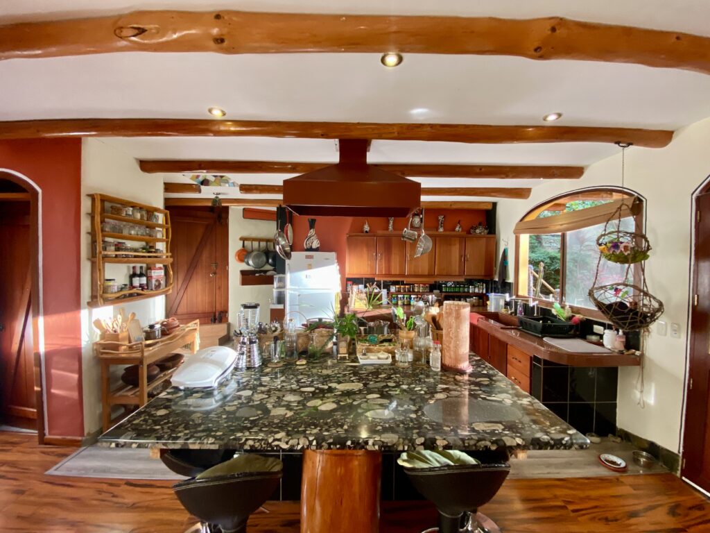 This is a truly unique and special property in Vilcabamba, regarded as one of the best in the area. The three homes on the property are thoughtfully designed, with high-end finishes and artistic touches that capture the charm and character of Vilcabamba. Ceramic art adorns the bathroom and shower walls, colorful glasswork accents, and ceramic mushroom statues with inlaid lights bring a whimsical feel. The houses feature quality hardwood floors and large glass windows, offering incredible green views. The main Red House has granite countertops, chacana-designed glass block inlays, and wooden doors with chacana symbols.