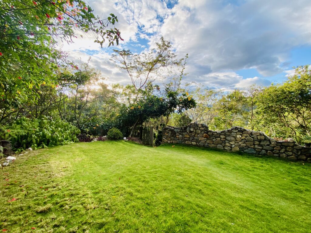 The property features raised garden beds, mature trees, a huilco forest, a bamboo grove, and a lower lookout point with stunning long-distance views of the Vilcabamba Valley. Entry to the property is at the top of this long rectangular lot, descending from an entrance above at the public road. The neighborhood is popular and rural, with good neighbors.