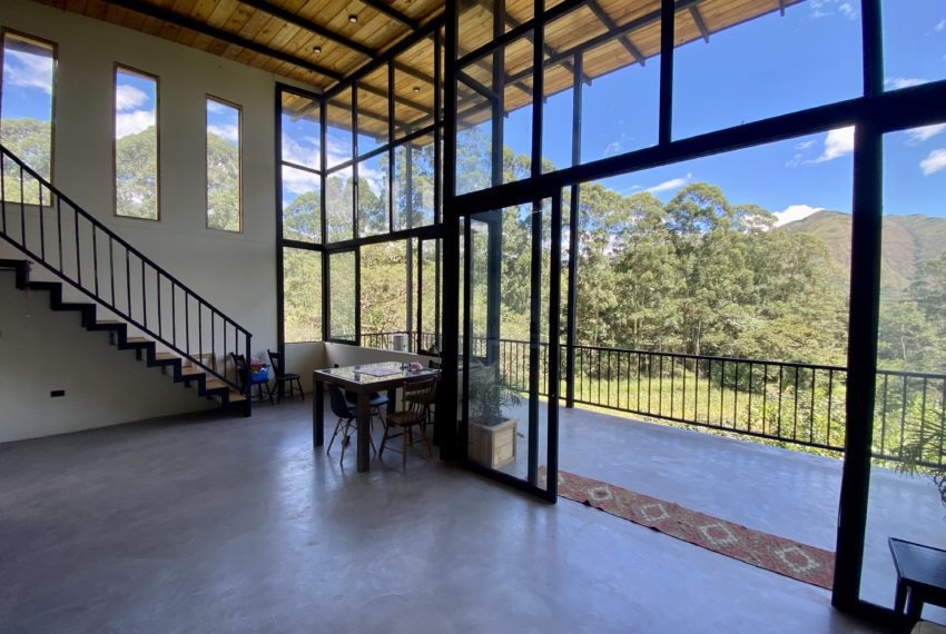 - The Red House is the largest and most elegant of the three. It features a spacious kitchen with granite countertops, a double sink, an island with a stove and oven, and two large pantry and storage areas. The open-concept design creates fluid spaces between the kitchen, dining area, and living/entertainment area, which is flooded with natural light from large picture windows on both sides. There is also a wooden bar area with space for 4-6 bar stools. Upstairs, the master bedroom includes an office wing, large windows, a wraparound balcony, a walk-in closet that doubles as a safe room, and a luxurious en-suite bathroom with a jacuzzi tub, bidet, and shower. The house also includes a loft space, additional 2+ bedrooms, 3.5 total bathrooms, and a large covered patio perfect for enjoying the valley views. There is also a large storage room that could be turned into a 4th bedroom or a caretakers suite with its own separate entrance as it also has a door to the outside.