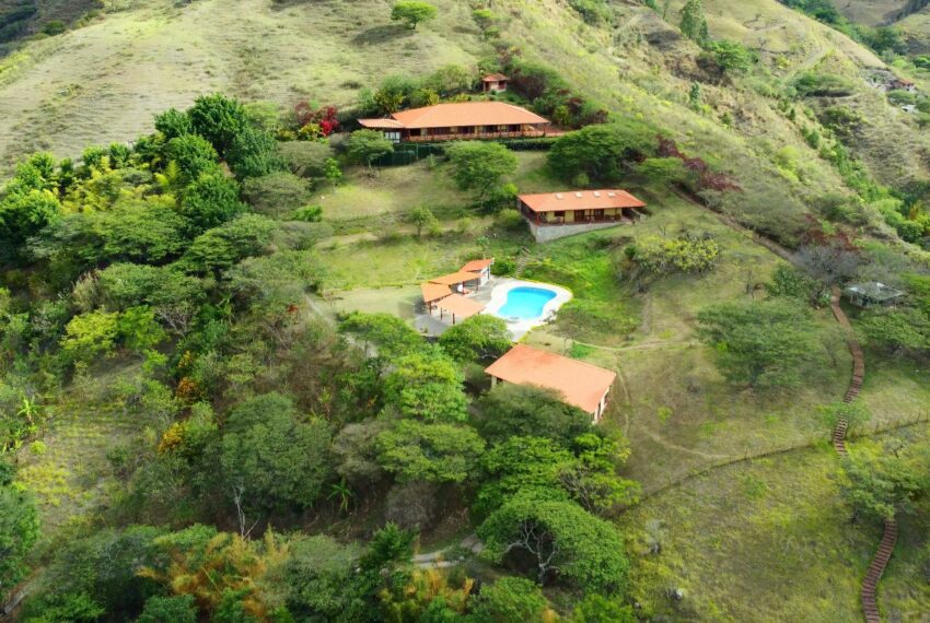 Lot 2: 8,497m2 /2.1 acres: This property has a private and paved access road and includes all of the main constructions- the main house, guest house, pool with covered patios, the wood shop, and the upper portion of this larger land.