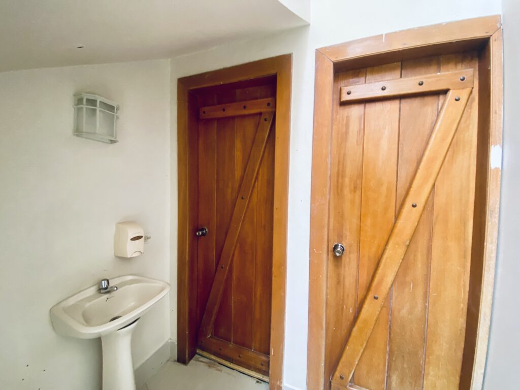 This is a large multipurpose space perfect for a variety of uses—whether as a meeting hall, workshop space, studio, office, or for small gatherings.