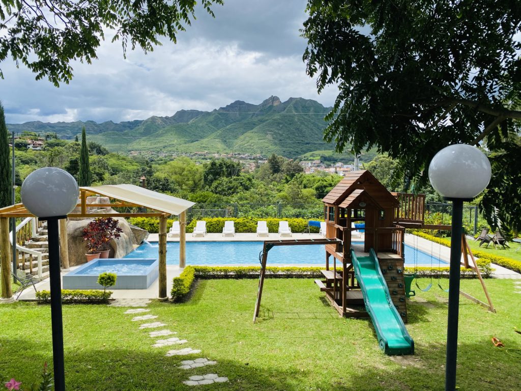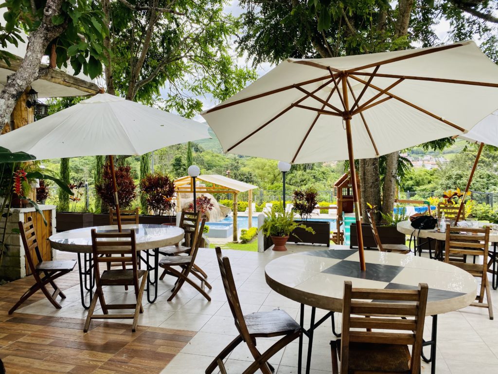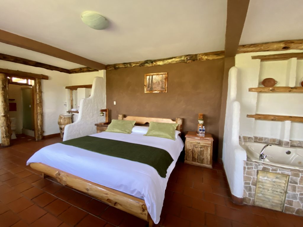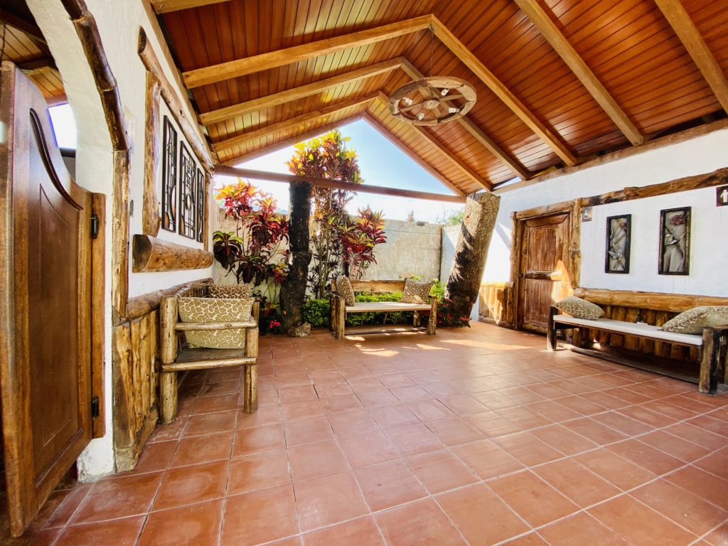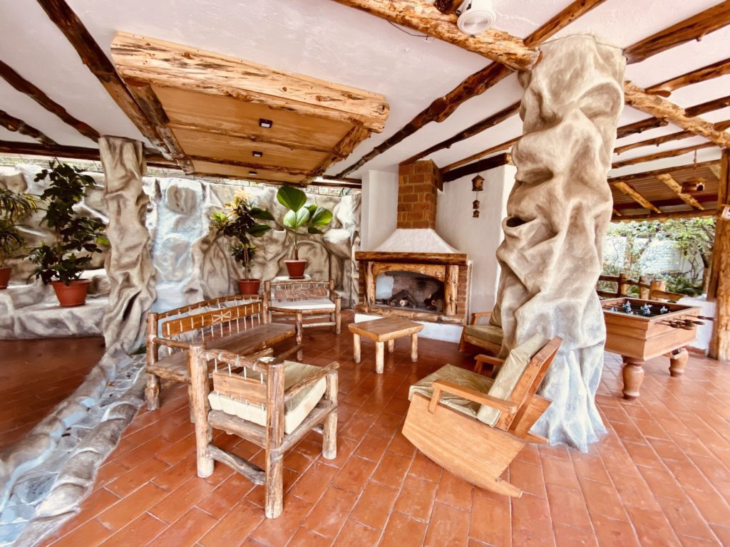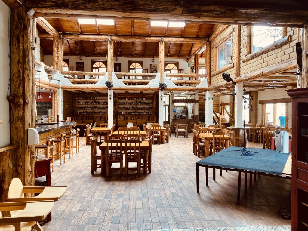 At the entrance of the property there is a public restaurant -brewery with its own heated pool (with slide and waterfall), jacuzzi, playground, a large conference room, and offices. This recreational area & restaurant (with a capacity for about 140 people) is available to patrons for day use for those guests that are not staying within the hotel. This entry operation has been functioning as a very lucrative business in addition to the hotel. Please contact Tara directly to see the past profits and numbers from this successful enterprise as well as the books of the hotel and events center. Old growth trees adorn the windows and terraces of this initial structure & have been incorporated into the building’s design (instead of being cut down). The abundance of plants, flowers and these trees decorating this entry building makes for a very inviting indoor/outdoor venue. This restaurant boasts upper balconies branching off of the indoor seating upstairs with adjoining conference rooms and offices, there is also a mid level terrace, and a large lower deck with views to the pool, gardens, and the famous Mandango mountain. Inside the restaurant there is a grand room with high ceilings, a stage, and capacity for around 65 people. A stone fireplace compliments the wooden features within this impressive and homey adobe construction. This entry business has its own large parking lot in addition to the parking for the hotel and events center behind.