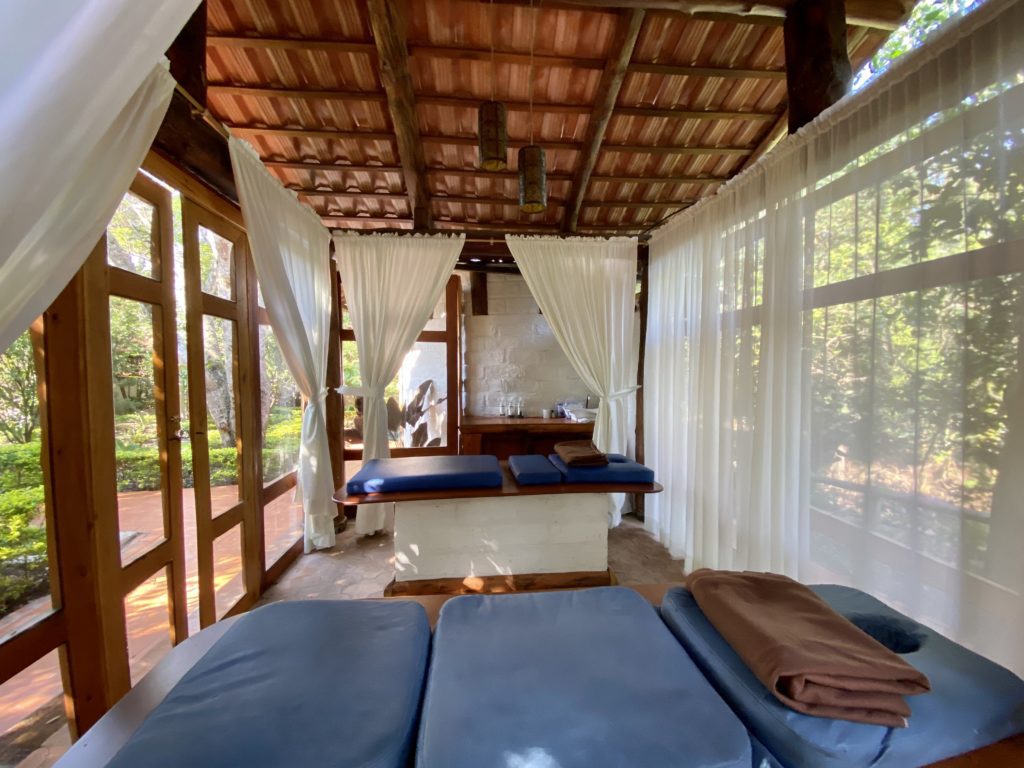 Beyond these houses there is a beautiful old church with a capacity for about 25 people surrounded by a labrynth of gardens and paths leading to the tennis court & spa to the West, or the events center and grounds to the East. The muti room spa hosts massage tables, steam boxes, a private garden jacuzzi, and is home to many of the properties’ fruit (mostly citrus trees). In this area you will also find the ground well that services water to the entire facility as a back up water source. The water capacity and sources are abundant with excellent systems and reserve tanks guaranteeing the entire property with ample water always.
