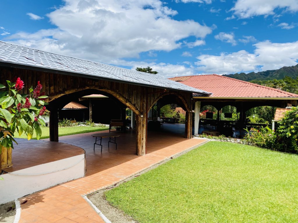 The events center of Descanso del Toro is the largest in Vilcabamba and the entire South of Ecuador with a capacity of 350+ people. It is the only venue around with a covered stage, covered dance floor, and a giant conference center or banquet facility. Attached to this events center is a large commercial size kitchen, bar, seating areas, garden spots, expansive lawns, and ponds with bridges leading into the gardens where a quaint chapel resides. This incredible facility has hosted many weddings, events, parties, and gatherings.