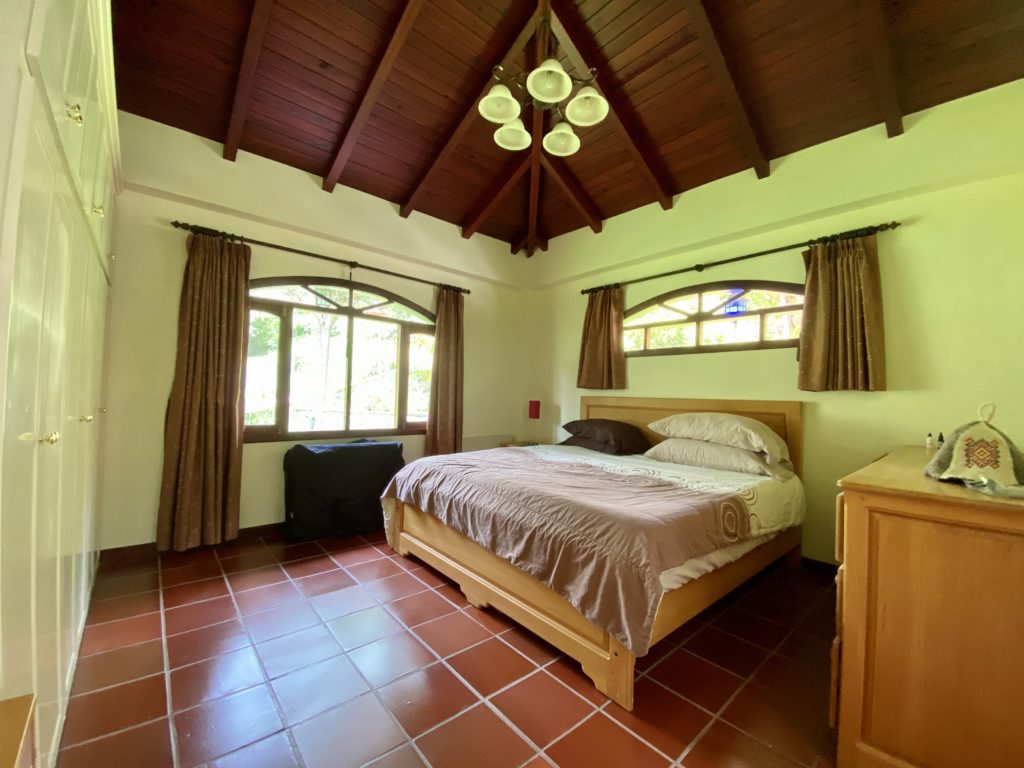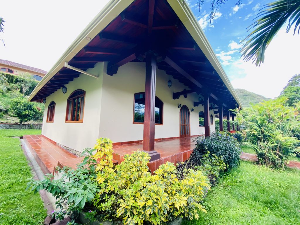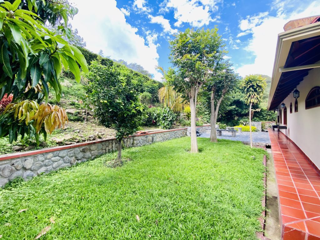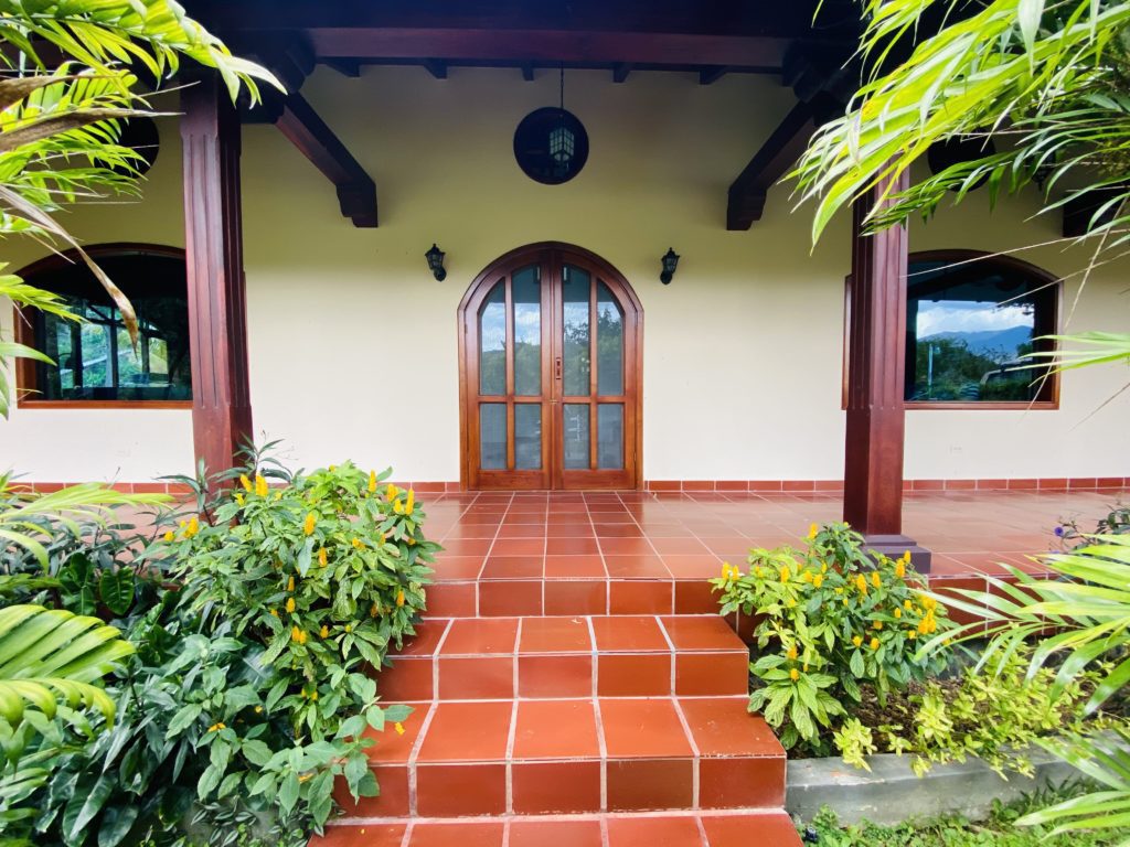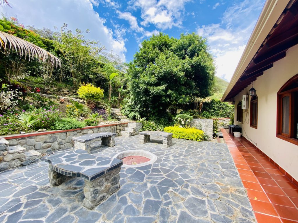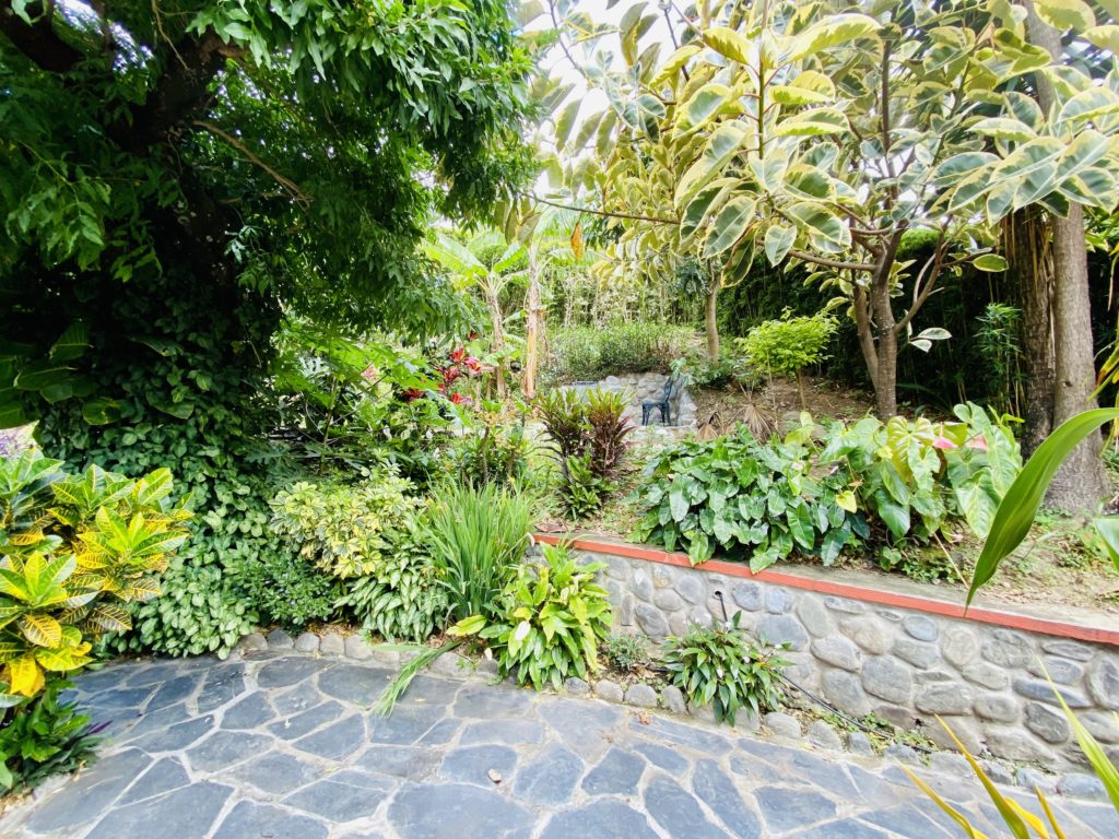 This is a 2 bedroom 2 bathroom home that needs to be duplicated here locally as there just are not enough homes of this kind and quality. The lot is small (.2 acres/900m2), but entirely landscaped and easy to maintain. One worker once or two a month can maintain the grounds beautifully, and there is enough lawn to have dogs. The house has tall vaulted ceilings, sky lights in all the right places, and an open concept living -dining-kitchen. Not many homes in the area have a real pantry (walk in) and laundry room fit for both a washer and dryer. There is a two car covered garage and nice man-cave/storage room upon entry. This property is located near to other homes at the back end of the Gated Community of San Joaquin about 15-25 minutes from town’s center (the road inside San Joaquin is already paved and the public road to get here is being paved very soon allowing for a smooth ride home without dust and bumps). This paved road soon to come will only add value to this property in the near future. Behind the house is a private area with a fireplace, benches, and a lovely slate tiled deck. There are two little walking trails going up the slight hill behind (totally landscaped with gorgeous flowers plants and fruit trees) ending at two different private sitting areas where one can enjoy the views across the valley.