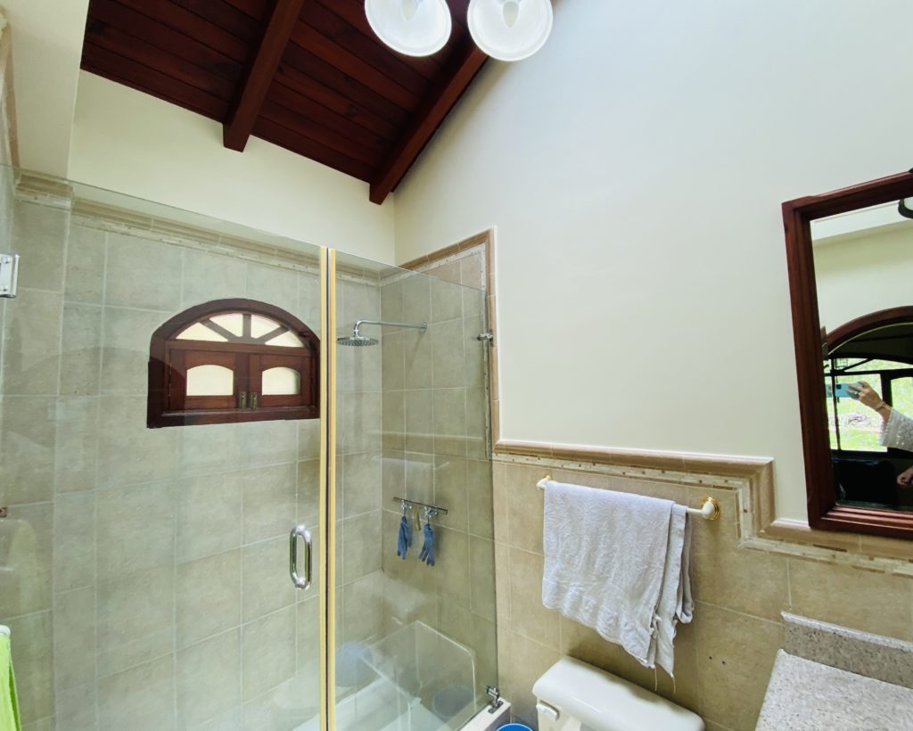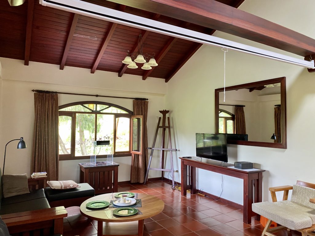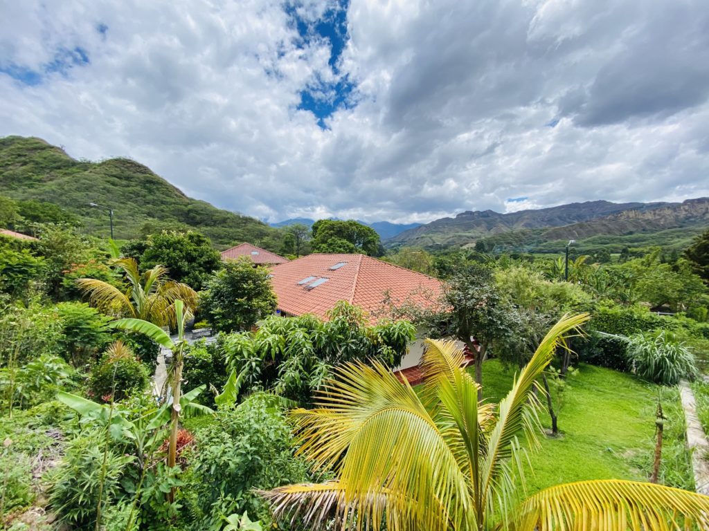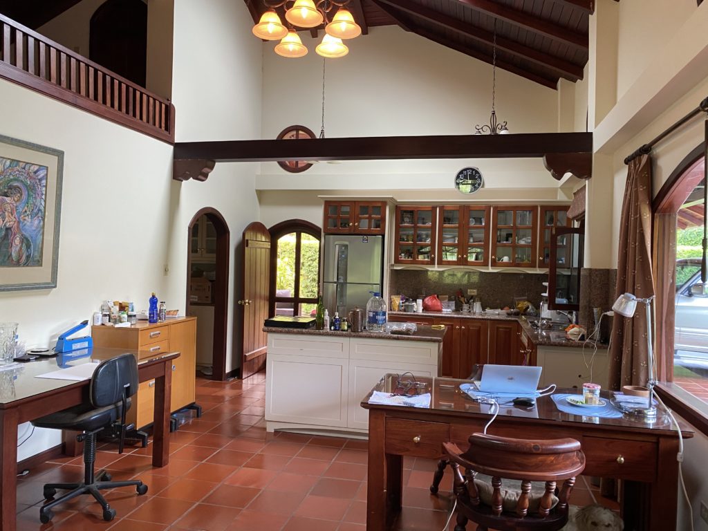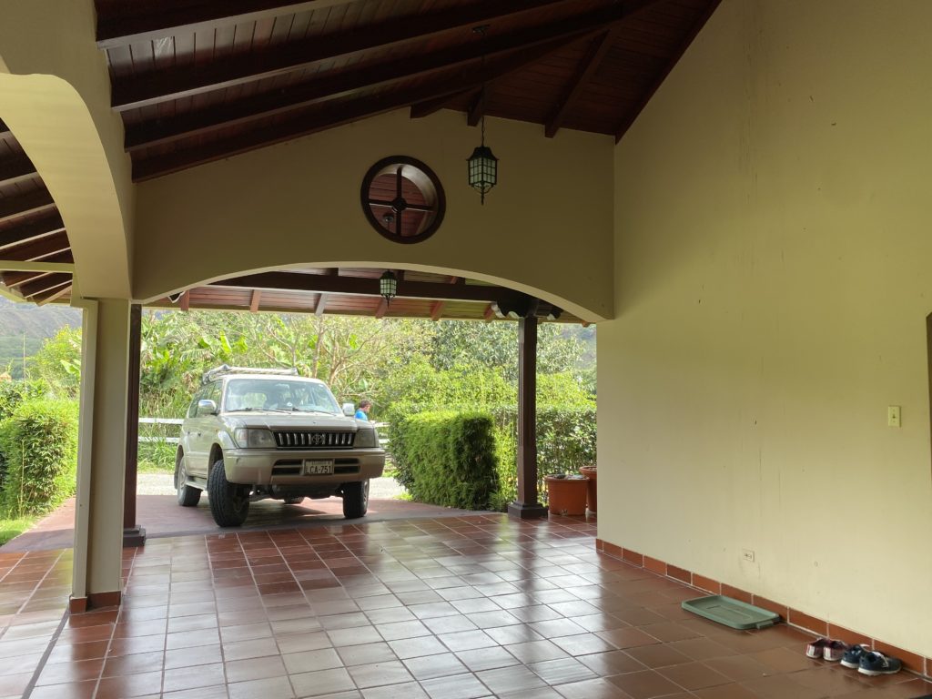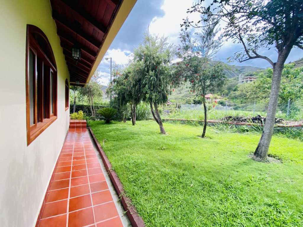 This is a 2 bedroom 2 bathroom home that needs to be duplicated here locally as there just are not enough homes of this kind and quality. The lot is small (.2 acres/900m2), but entirely landscaped and easy to maintain. One worker once or two a month can maintain the grounds beautifully, and there is enough lawn to have dogs. The house has tall vaulted ceilings, sky lights in all the right places, and an open concept living -dining-kitchen. Not many homes in the area have a real pantry (walk in) and laundry room fit for both a washer and dryer. There is a two car covered garage and nice man-cave/storage room upon entry. This property is located near to other homes at the back end of the Gated Community of San Joaquin about 15-25 minutes from town’s center (the road inside San Joaquin is already paved and the public road to get here is being paved very soon allowing for a smooth ride home without dust and bumps). This paved road soon to come will only add value to this property in the near future. Behind the house is a private area with a fireplace, benches, and a lovely slate tiled deck. There are two little walking trails going up the slight hill behind (totally landscaped with gorgeous flowers plants and fruit trees) ending at two different private sitting areas where one can enjoy the views across the valley.