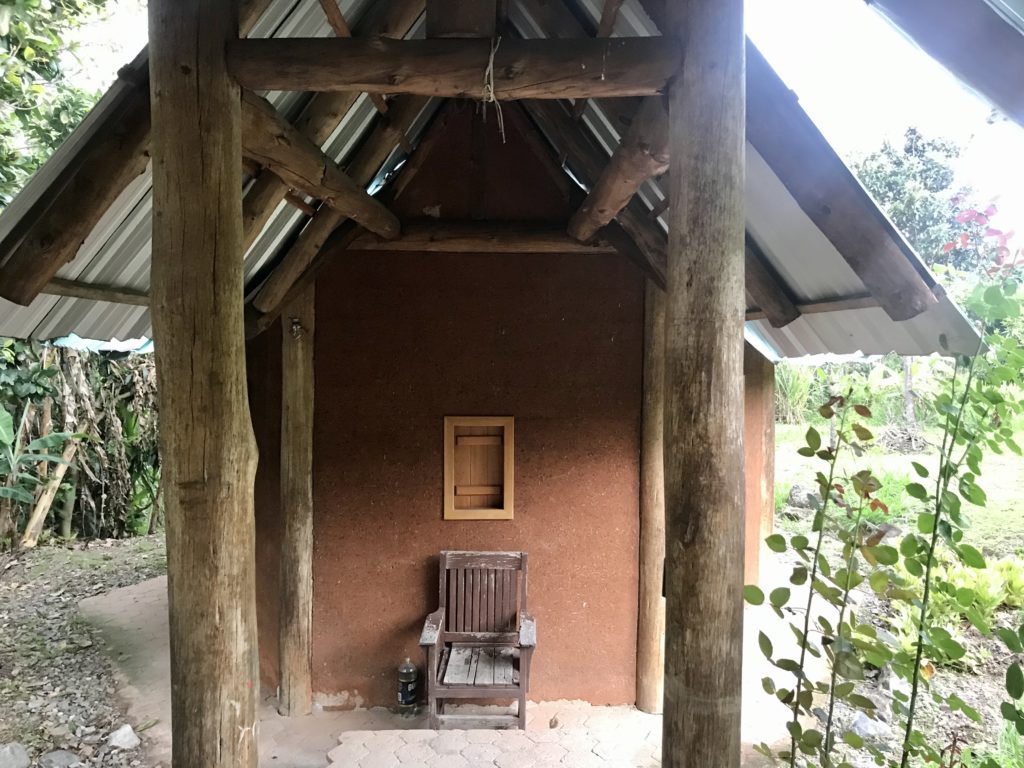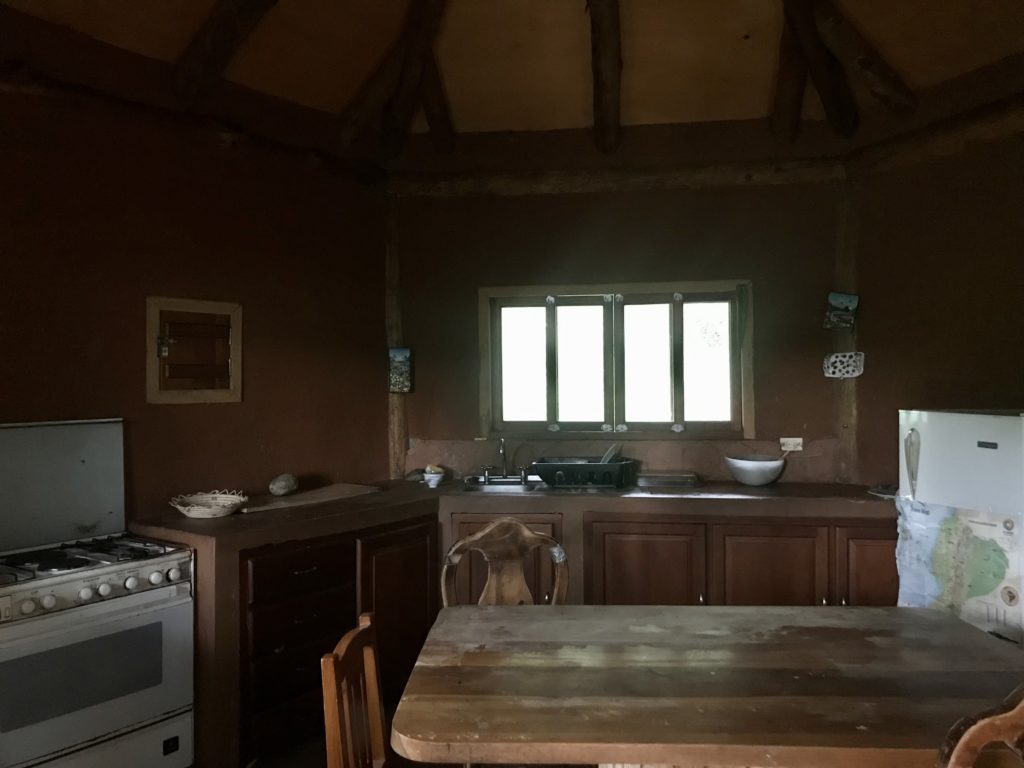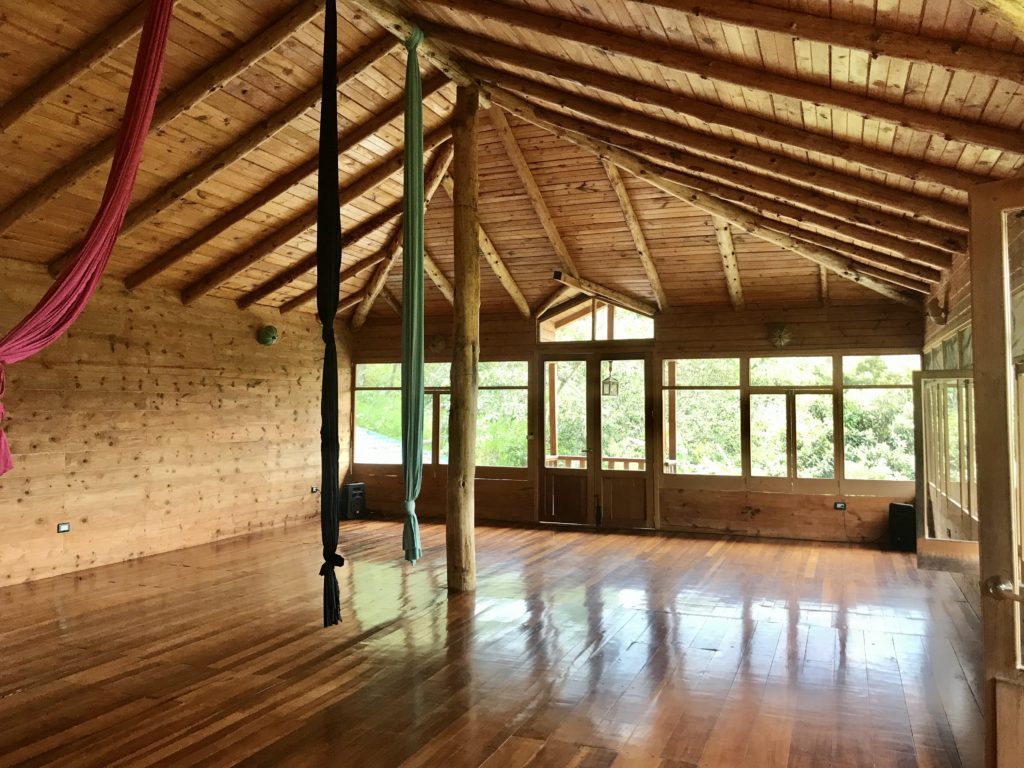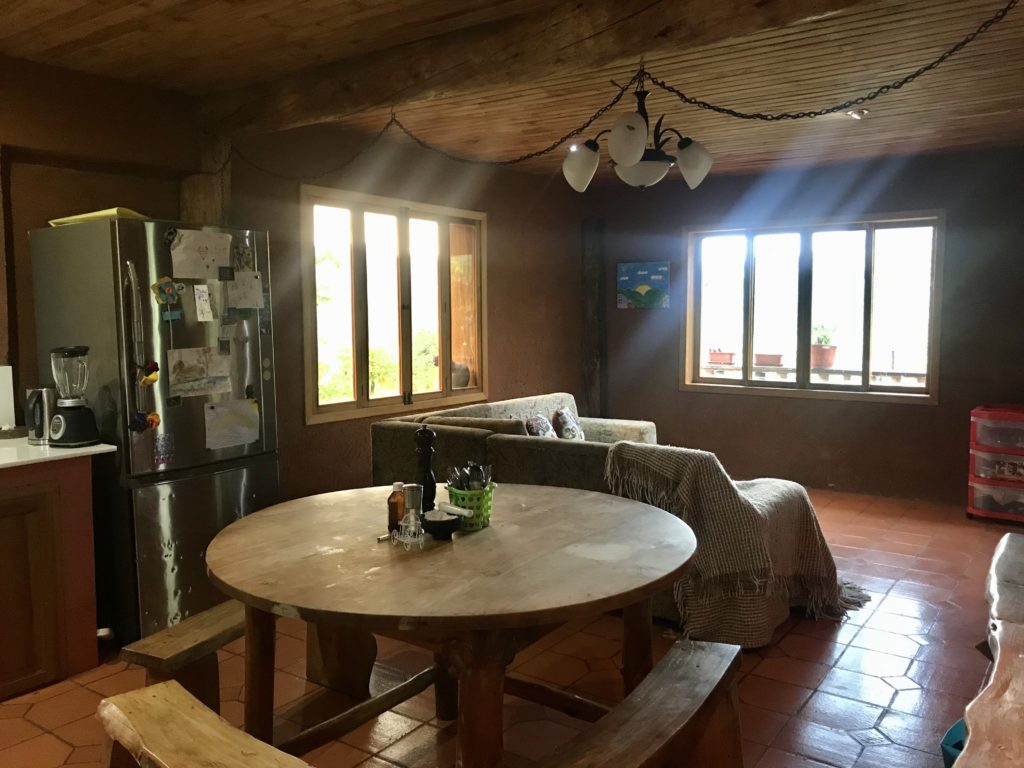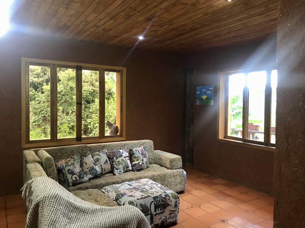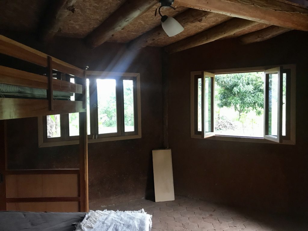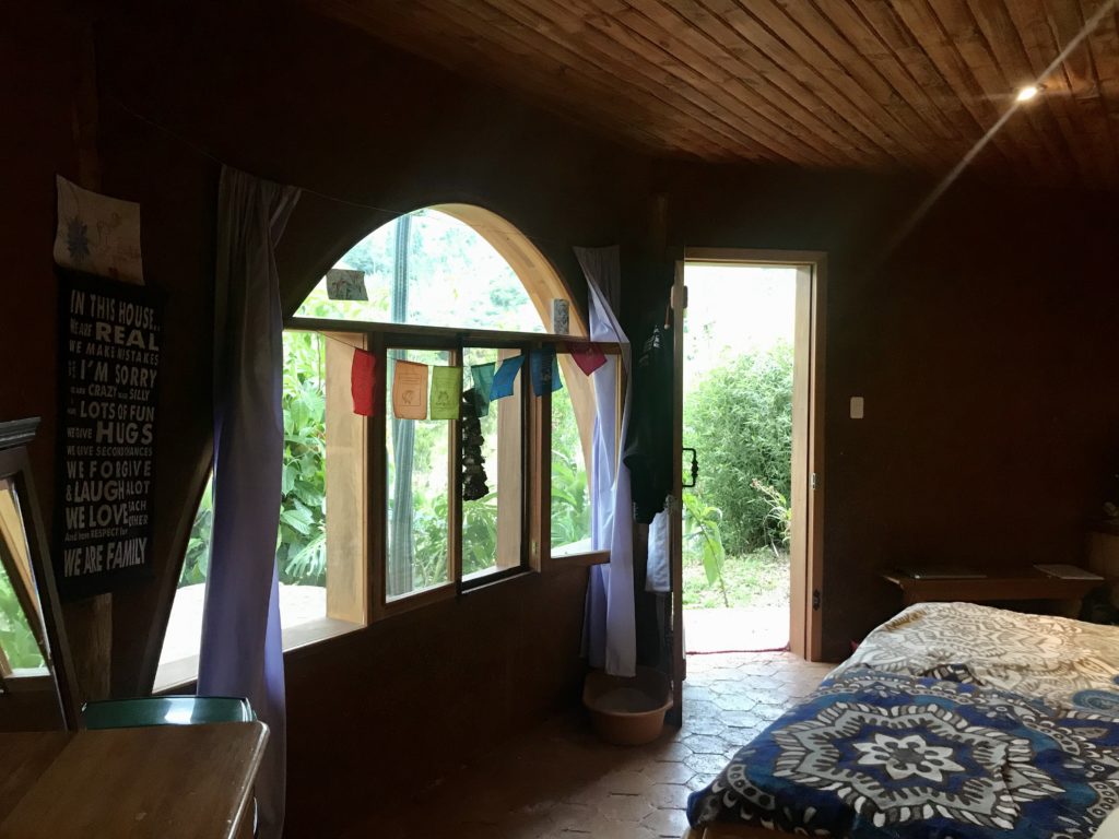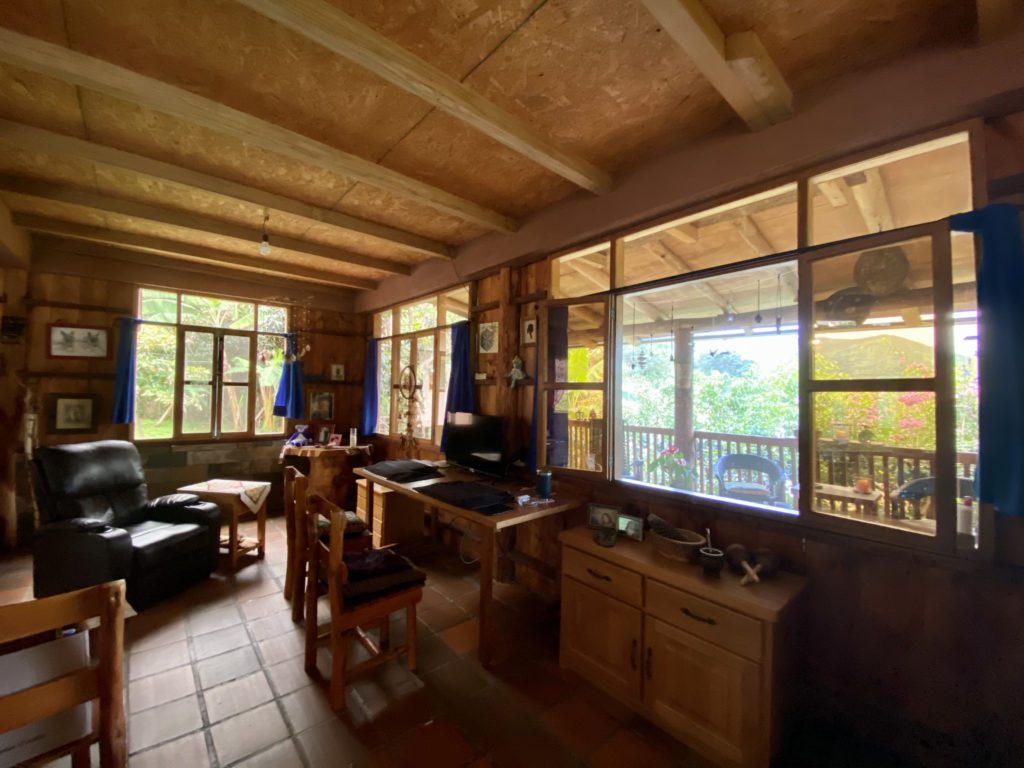The upper floor of the main house has one bedroom, one bathroom, kitchen, and a giant room that could be used as a living room, yoga studio, dance floor etc. There is a nice covered sitting area outside of the entrance to this second floor at the top of the outside staircase. This upper floor is gorgeous, made of all pine, and the windows view the famous Mandango Mountian, the Andes, and out onto the little mountain valley where this property is located.